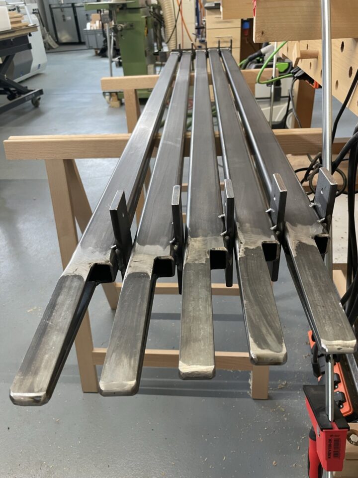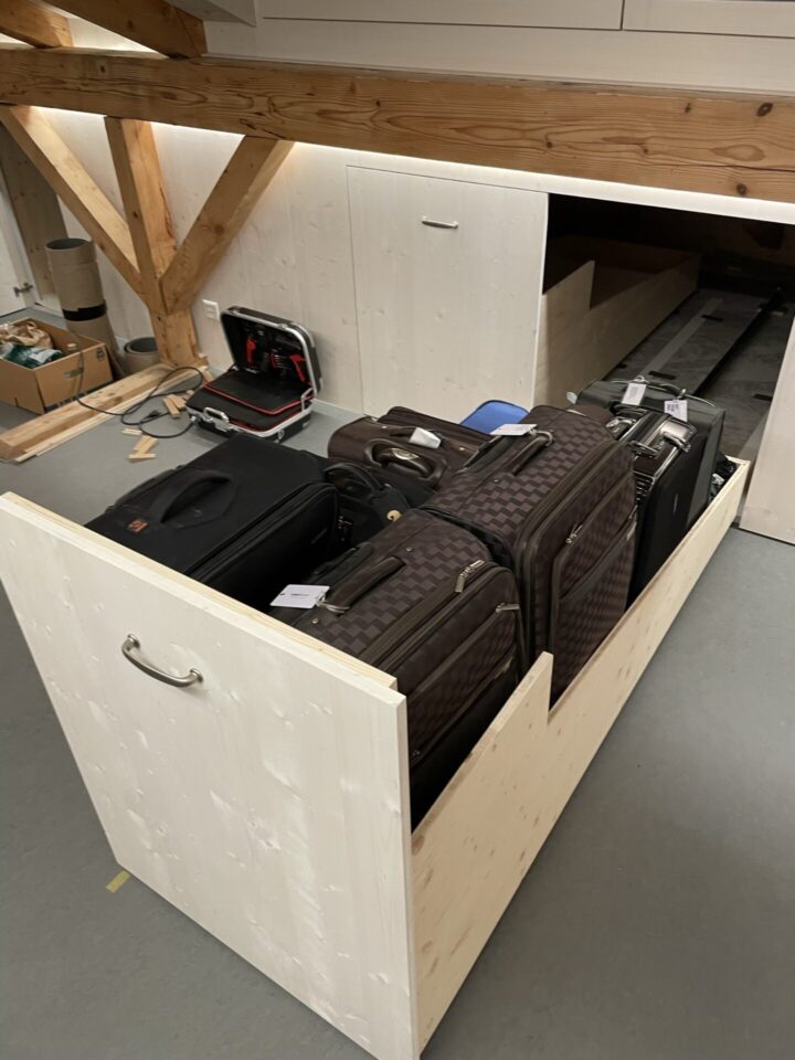 Das Grundprinzip ist die Schublade. Man zieht sie raus, legt etwas hinein und schiebt sie wieder rein. Genau so funktionieren die Wagen, die ich entwickelt und gebaut habe. Man zieht sie aus der Wand, belädt sie und schiebt sie wieder rein. Alles ist ordentlich versorgt und bleibt gut auffindbar, ohne dass man auf den Knien unter dem Dach rumsuchen müsste.