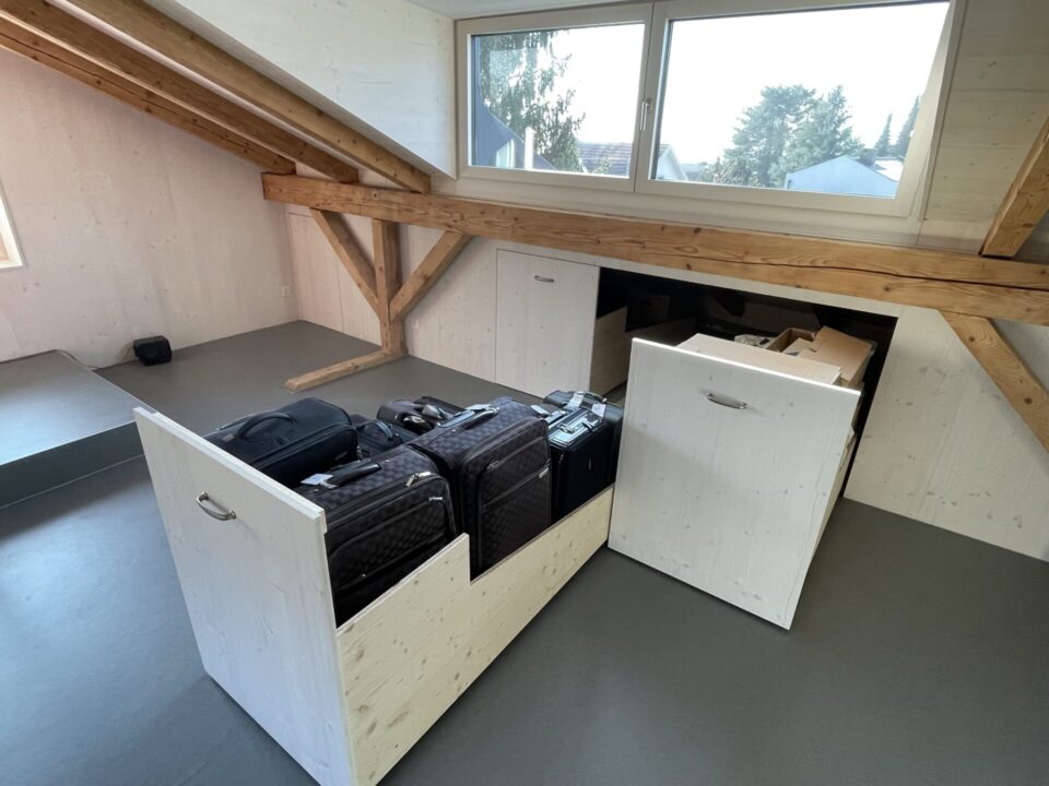 Ein Estrich mit schlecht begehbaren Dachschrägen kann für das Verstauen von Material relativ schlecht genutzt werden.