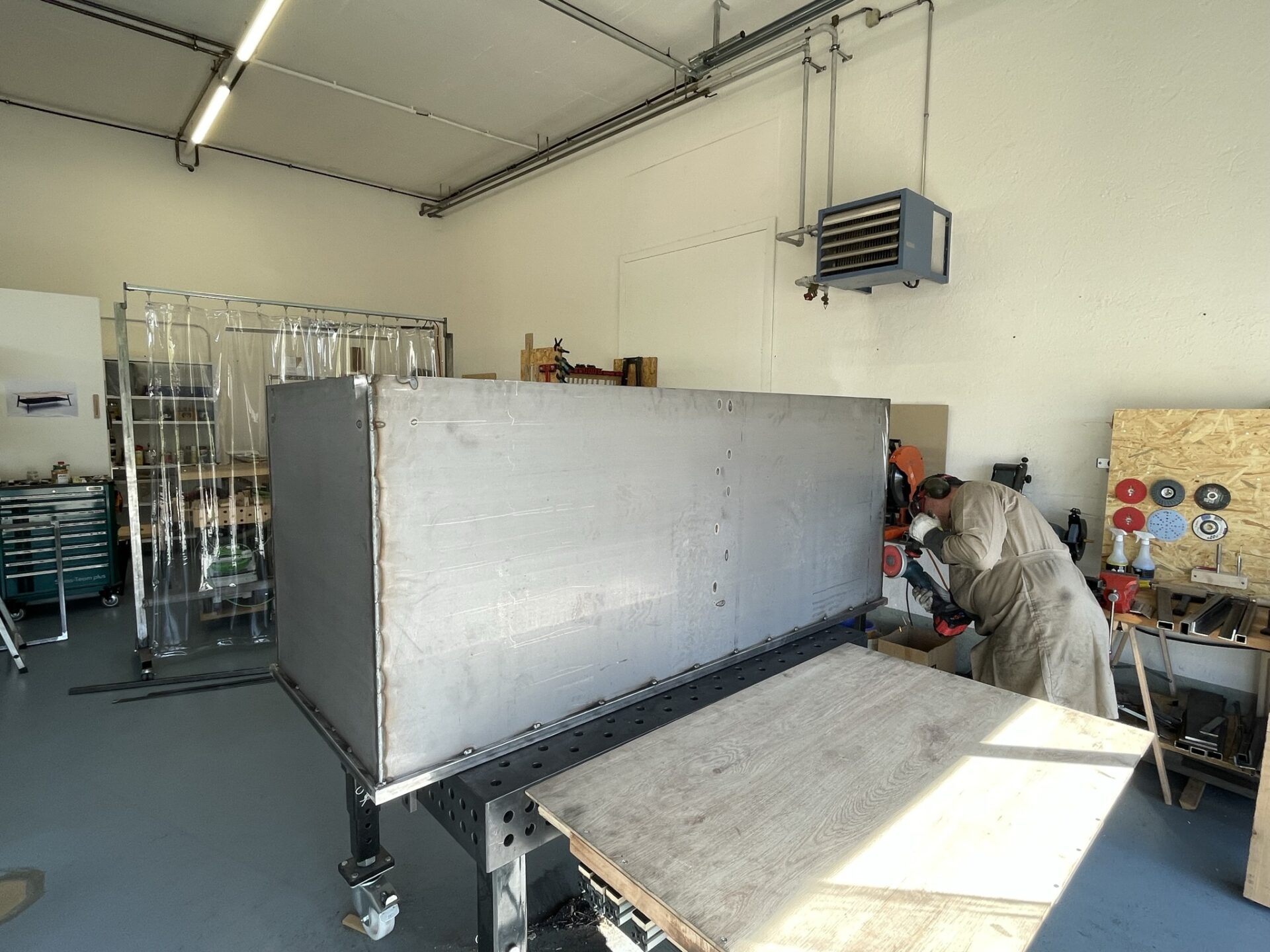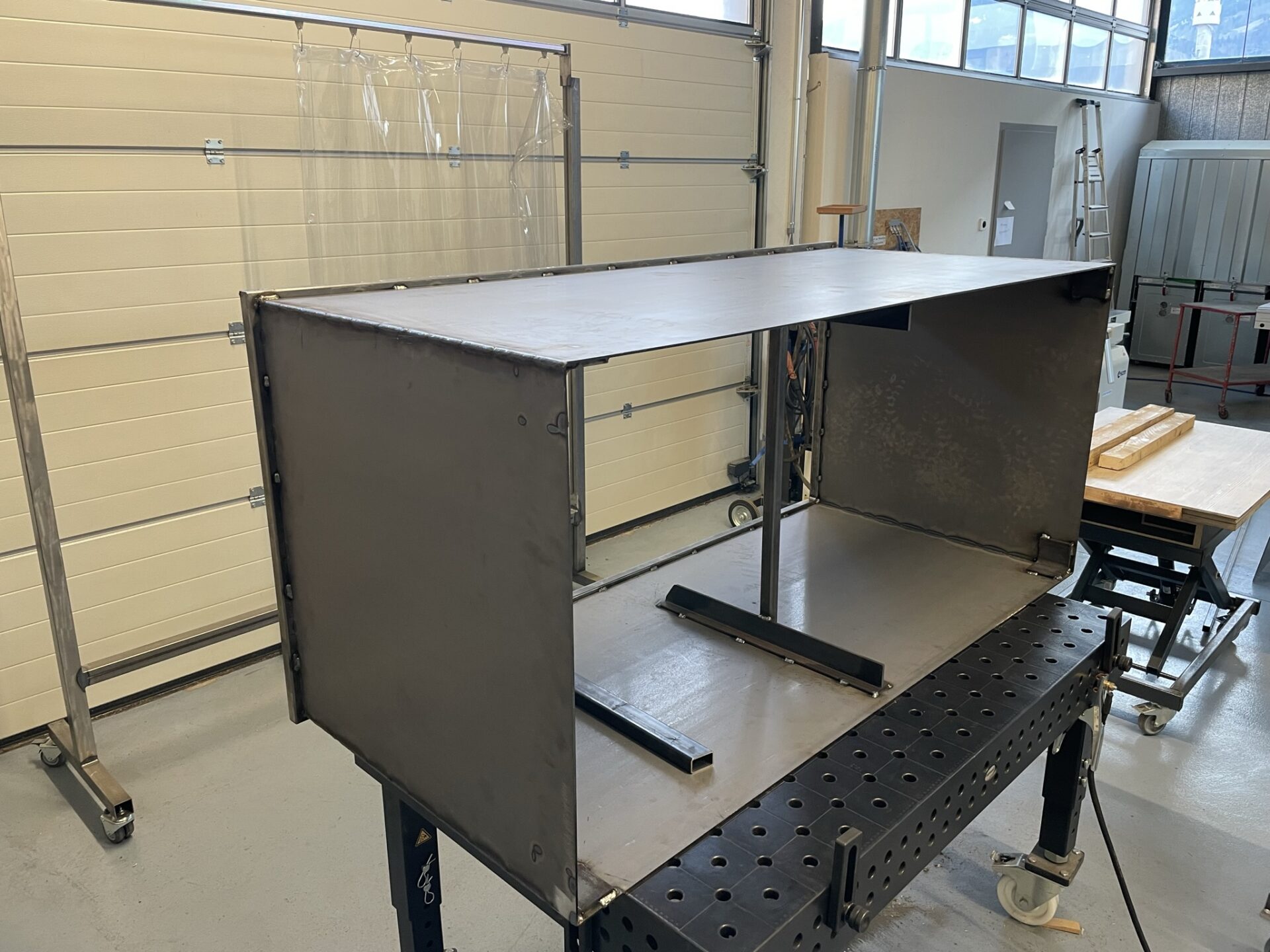 Zu zweit bauen und schweissen wir diese schweren Brocken zusammen – eine schweisstreibende Arbeit!